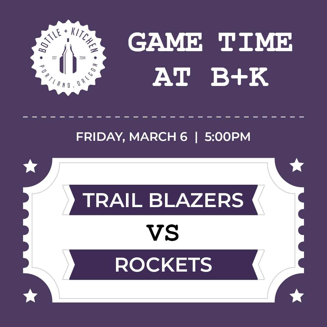 Grab a courtside spot at Bottle + Kitchen and watch live basketball as the Portland Trail Blazers take on the Houston Rockets! Sink your teeth into a Spicy Chicken Sandwich or Hanger Steak and sip on one of our signature cocktails like the Smash or Pass, or enjoy an ice-cold Oregon-brewed beer as the game heats up. Get there early for Pineapple Hour from 4-6 PM and score on tasty food and drink specials before tip-off. Big plays and delicious bites — we’re your ultimate game-night hangout!